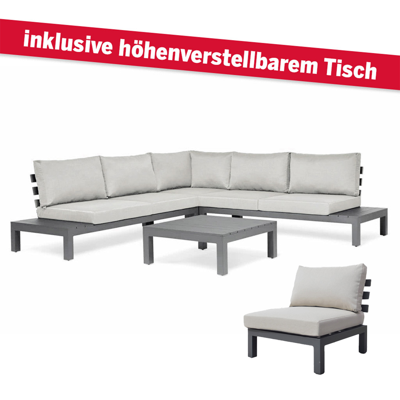 Ob für gemütliche Sommerabende mit Freunden oder ruhige Lesestunden in der Nachmittagssonne: Die weich gepolsterten Kissen sorgen für außergewöhnlichen Sitzkomfort und verwandeln Ihre Terrasse in eine stilvolle Outdoor-Lounge. Das 5-teilige SUNS Lounge Set Vita bietet noch mehr Flexibilität in der Gestaltung – ideal für großzügige Outdoorflächen und individuelle Raumlösungen.