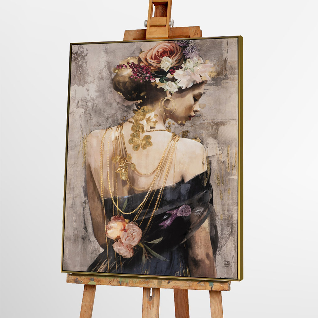 Die Kombination aus sanften Naturtönen, edlen Blütendetails und Highlights die durch Metall Folie erzeugt wurden geben dem Bild eine faszinierende Tiefe und Lebendigkeit. Ob im Wohnzimmer, Schlafzimmer oder im eleganten Eingangsbereich – dieses Kunstwerk zieht alle Blicke auf sich und schafft eine warme, luxuriöse Atmosphäre.